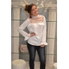 Chemisier blanc satin/dentelle/perles